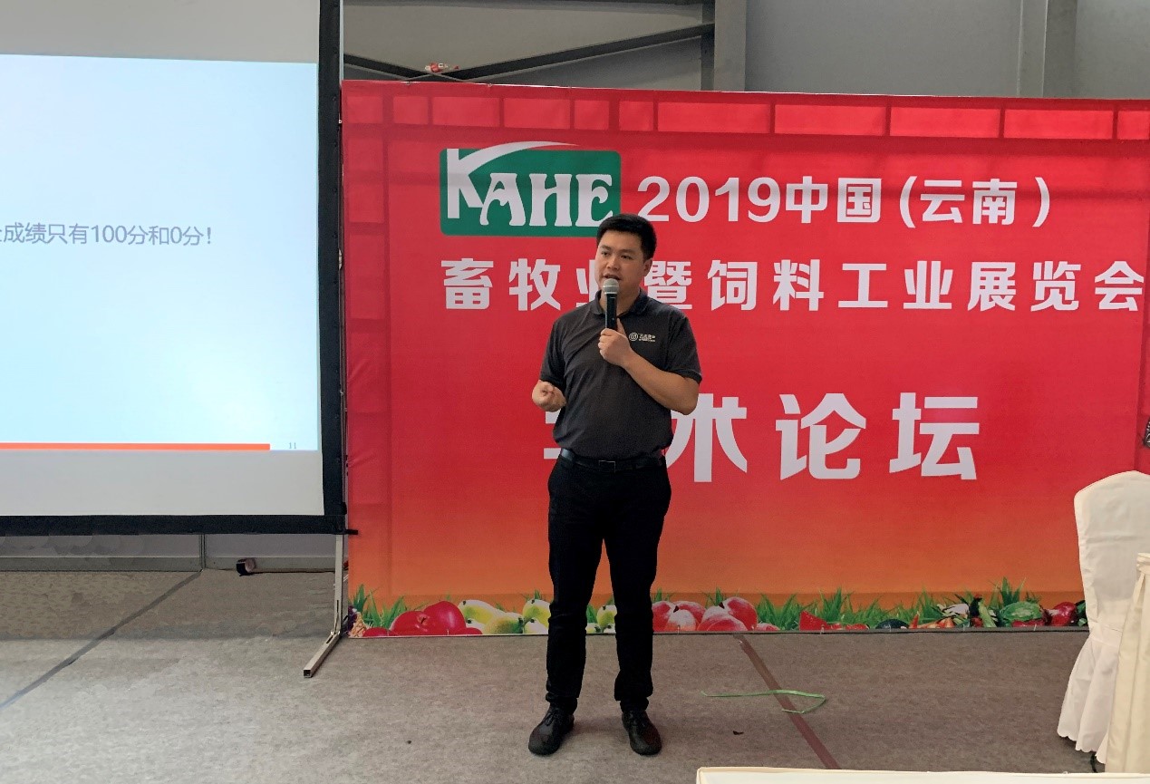 在展會同期的學術(shù)論壇上,天兆豬業(yè)營銷中心銷售部經(jīng)理李凡作了《非洲豬瘟防控與生豬復養(yǎng)》的主題演講。李經(jīng)理以豬場建設為切入點,向現(xiàn)場客戶詳細介紹了天兆豬業(yè)“防非六模式”的關(guān)鍵控制點,并探討了在當前非瘟防控新形勢下如何成功復養(yǎng),表示天兆豬業(yè)愿與廣大客戶攜手同行,共抗非瘟,并為準備復養(yǎng)的客戶提供優(yōu)質(zhì)種豬。