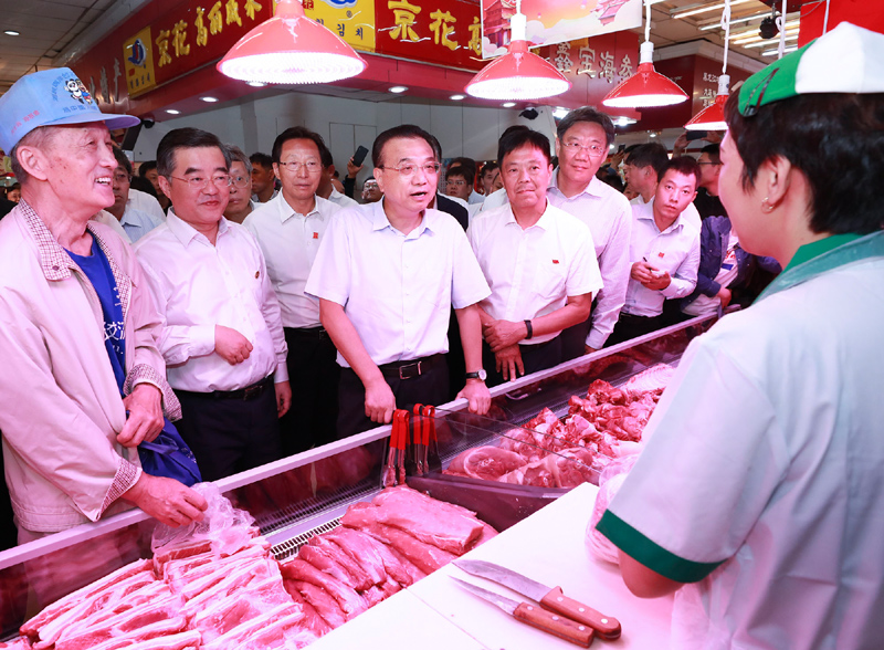 (李克強(qiáng)總理在哈爾濱菜市場(chǎng)詢問(wèn)豬價(jià) 圖源中國(guó)政府網(wǎng))